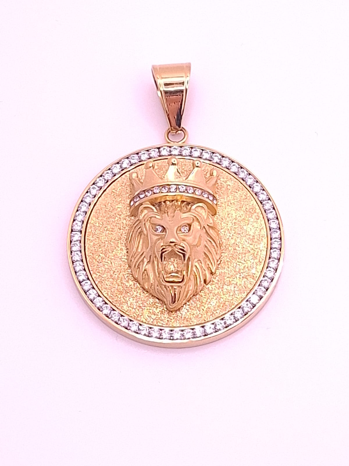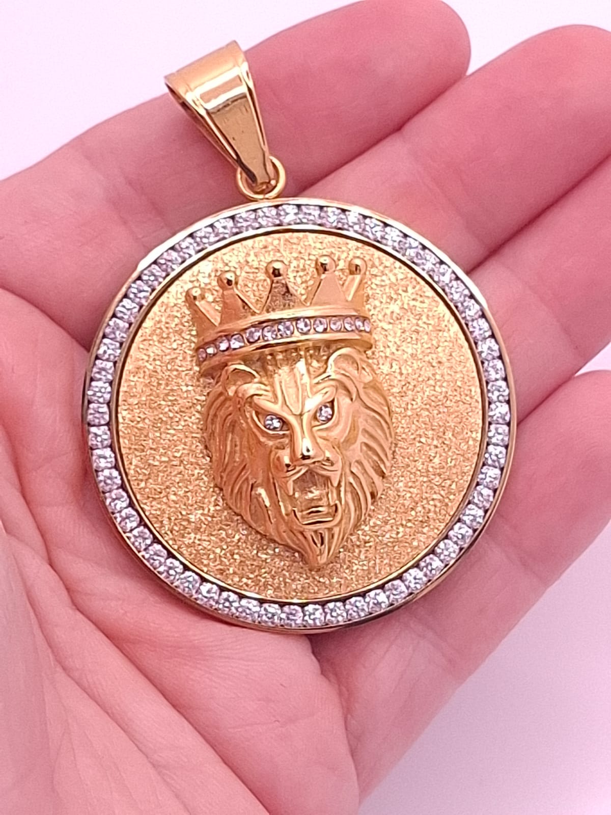 Dieser ausdrucksstarke Kettenanhänger aus hochwertigem Edelstahl vereint kraftvolle Symbolik mit edlem Design. Im Zentrum des runden Anhängers thront ein detailreich gearbeiteter Löwe mit Krone – ein Symbol für Stärke, Mut und Führung. Der fein ausgearbeitete Rand des Anhängers ist mit funkelnden Zirkonsteinen besetzt, die dem Schmuckstück eine elegante und luxuriöse Note verleihen.