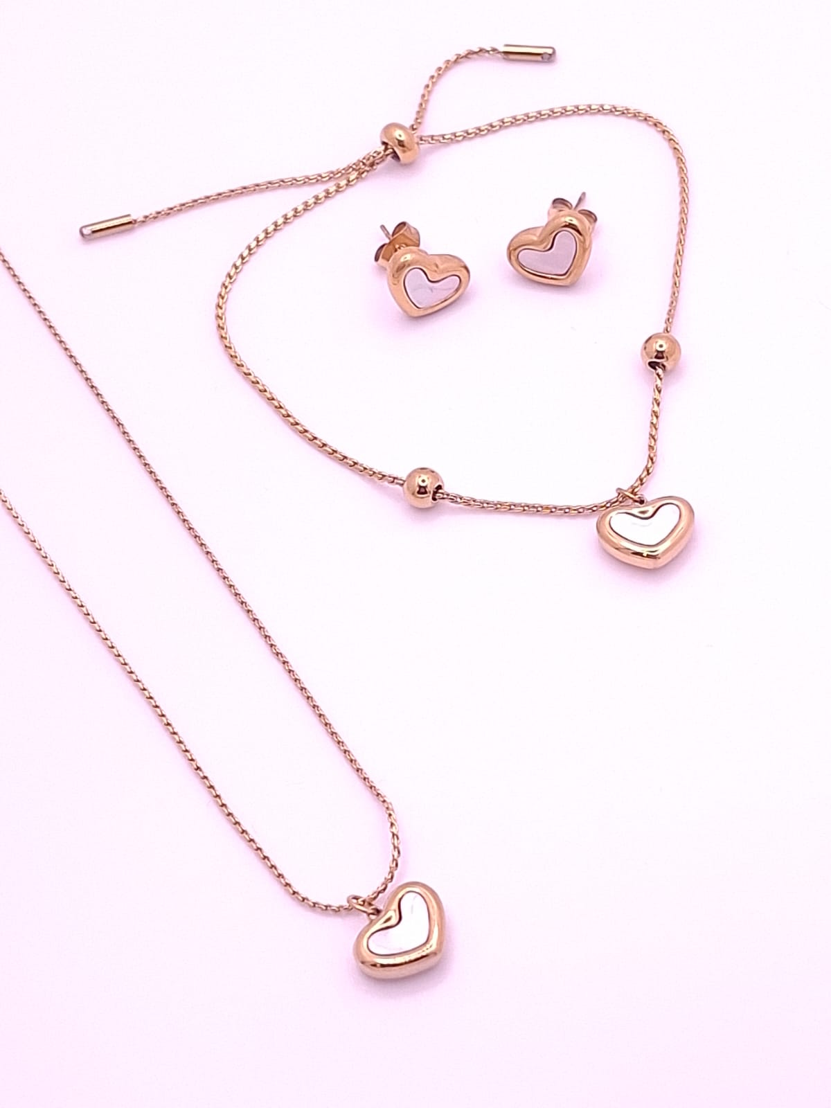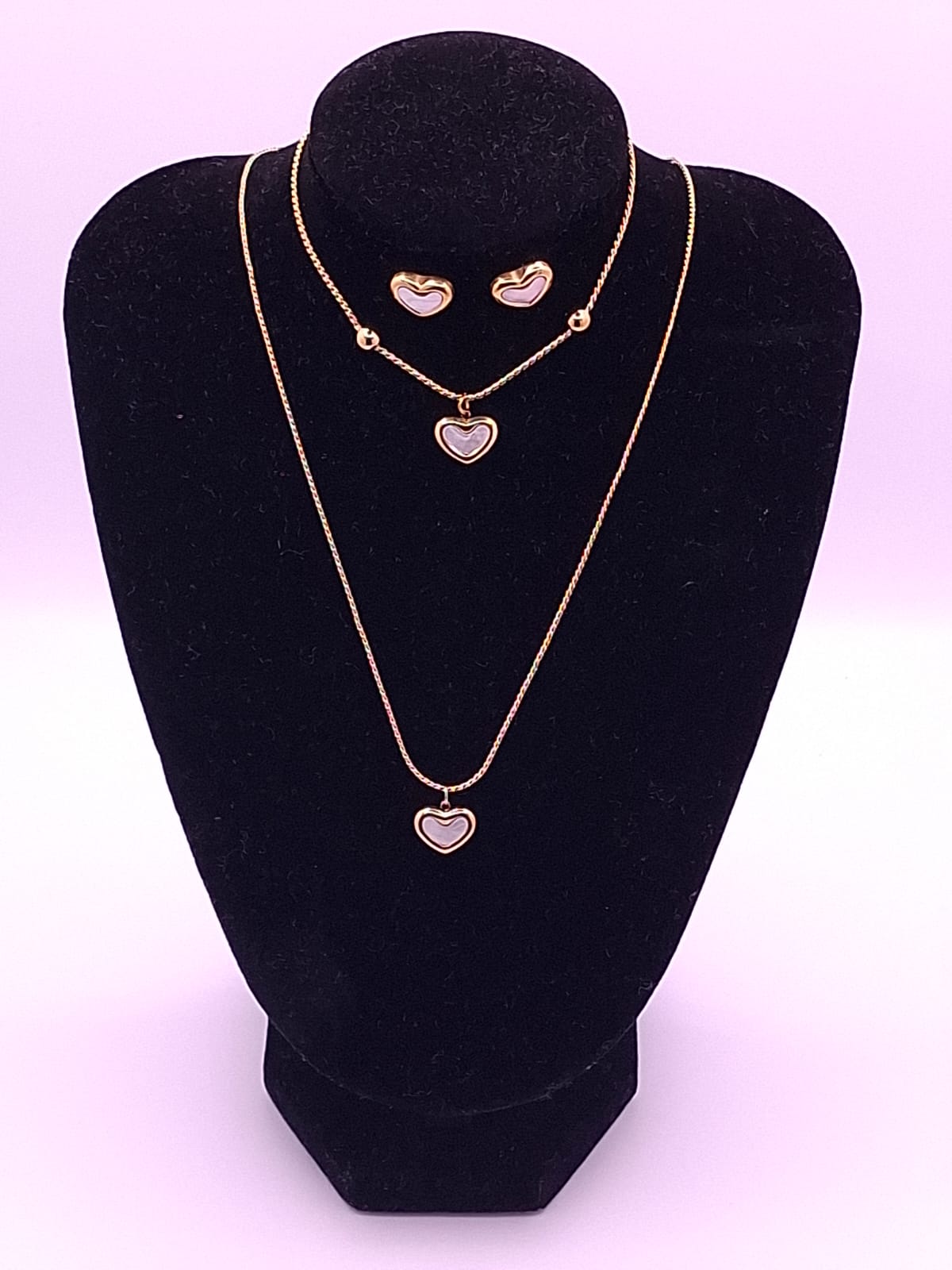 Elegantes Schmuckset aus Edelstahl mit 18K Vergoldung – Herzdesign in Gold & Weiß